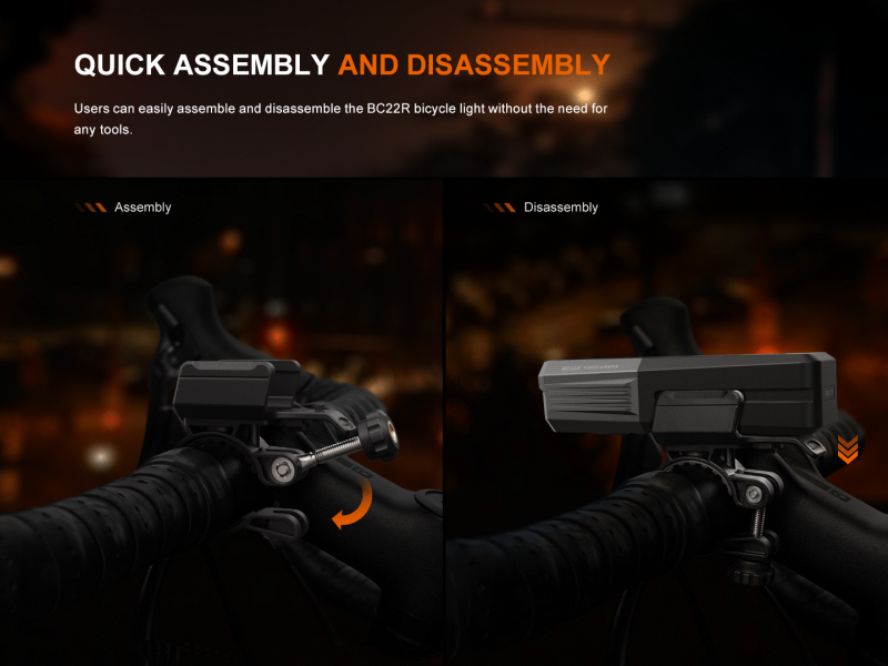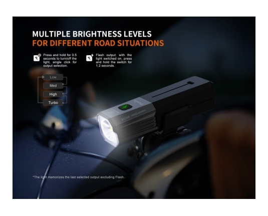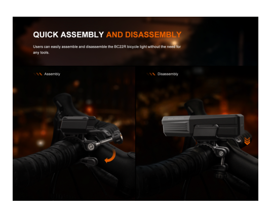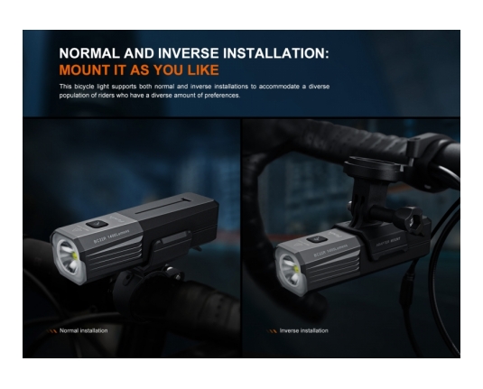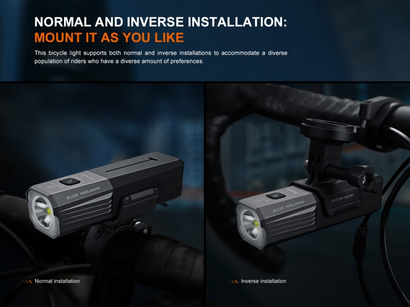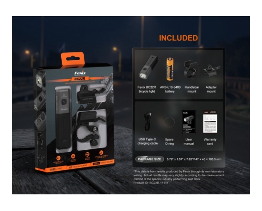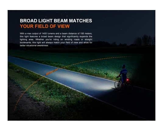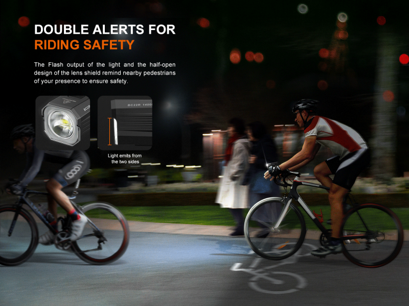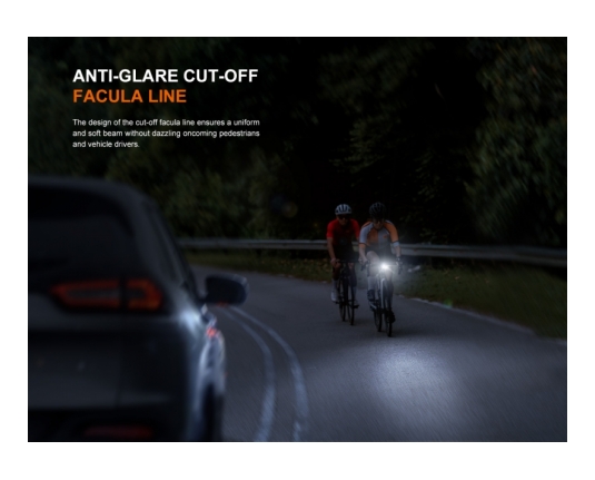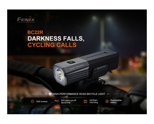 Fenix BC22R je odlična profesionalna kolesarska svetilka s presečnim sistemom osvetlitve (cut-off facula line), kar omogoča hkratno bližnjo in daljnosežno osvetlitev.