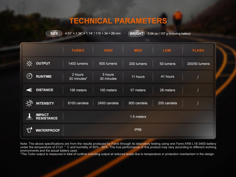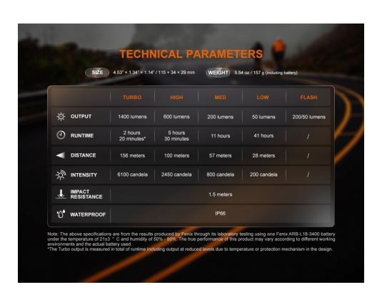 Svetilka doseže zavidljivih 1400 lumnov svetilnosti in 156 meterski snop. .