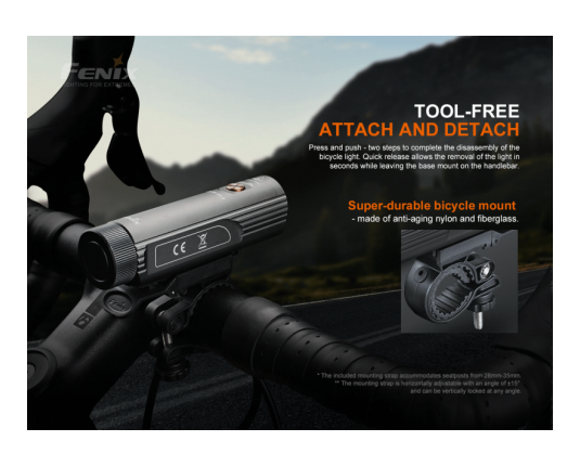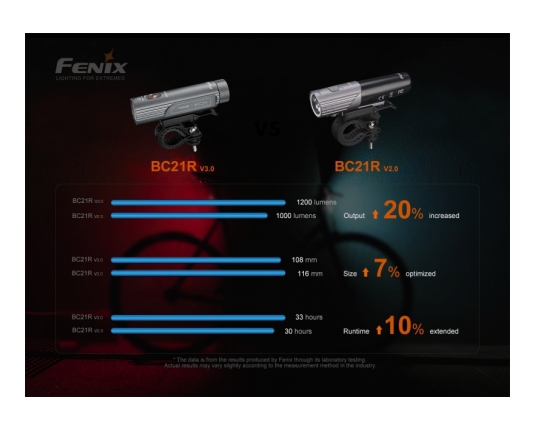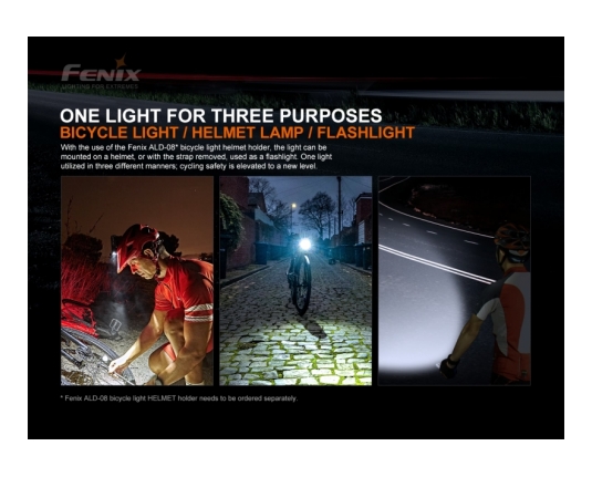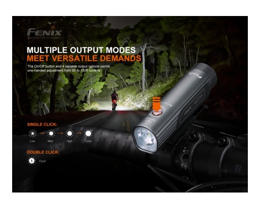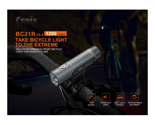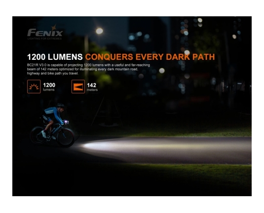 Tretja nadgradnja legendarne Fenix BC21R. Odlična profesionalna kolesarska svetilka z dvotočkovnim sistemom osvetlitve (Dual Distance Beam System), kar omogoča hkratno bližnjo in daljnosežno osvetlitev.