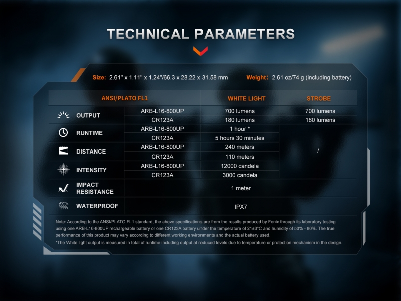 Največja svetilnost 700 lumnov in doseg snopa 140 metrov lahko znatno izboljšata vidljivost in natančnost pri streljanju.