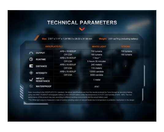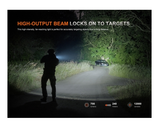 → 700 lumnov: vzdržljivost 1h; snop 240m