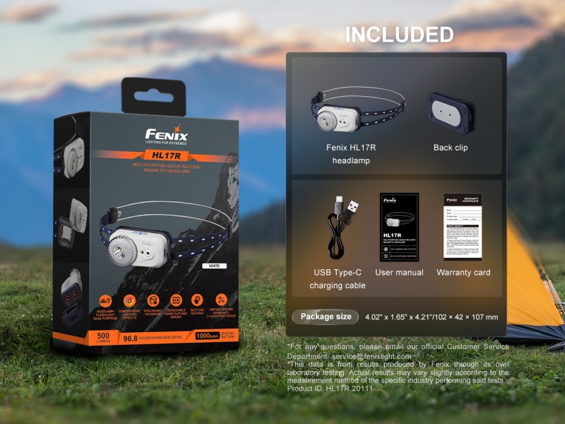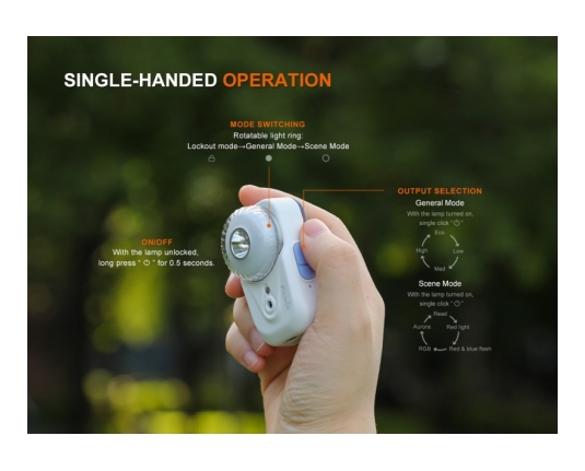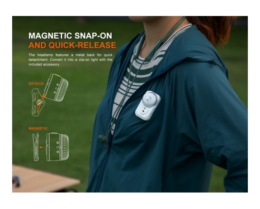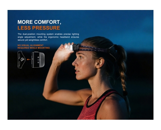 Odlična ultralahka polnilna svetilka Fenix HL17R z dvojno funkcijo uporabnosti: ročna ali naglavna svetilka.