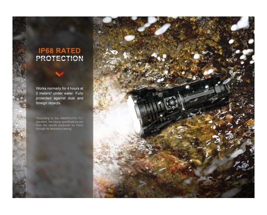 Zaradi izjemne svetilnosti in kakovosti je primerna le za profesionalno rabo. Izdelana je iz anodiziranega letalskega aluminija. Vodoodporna po standardu IPX-8. Svetilka ima ojačano ultra-čisto dvojno lečo z anti - reflektivno prevleko proti odsevu in Premium Type HAIII anodiziran premaz proti rjavenju. Prav tako ima elektronsko regulirano svetilnost in ročaj iz nedrsečega materiala. Napaja jo jo trije 5000 mAh akumulator.