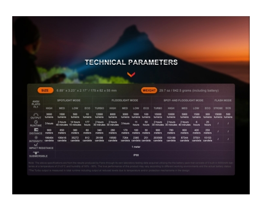 → 15.000 lumnov: vzdržljivost 2h 30min: snop 900m