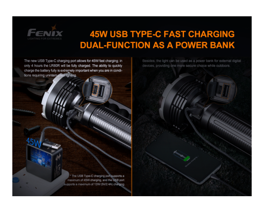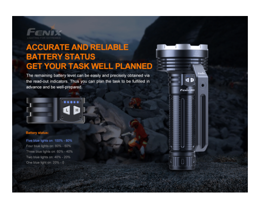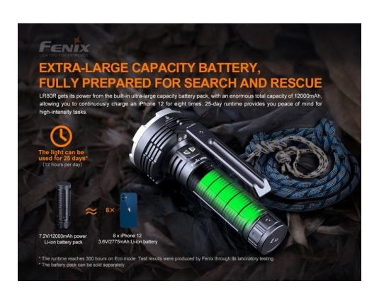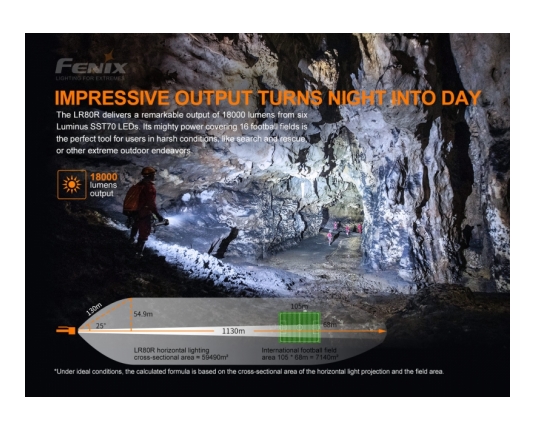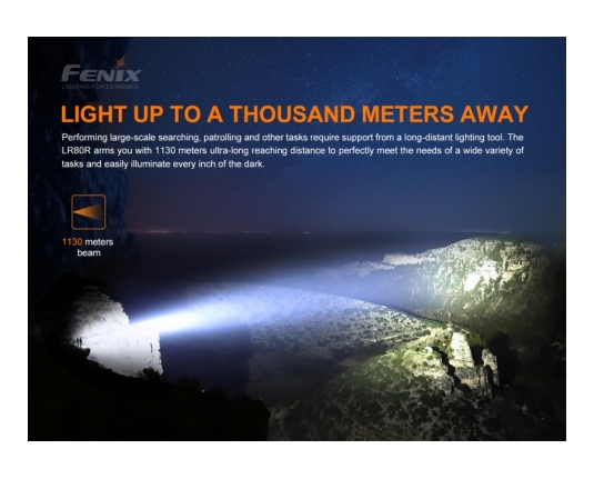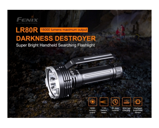 Fenix LR80R je zelo najzmogljivejša polnilna ultra kompaktna svetilka, ki doseže neverjetnih 18.000 lumnov svetilnosti. Najmočnejša ročna svetilka na trgu!