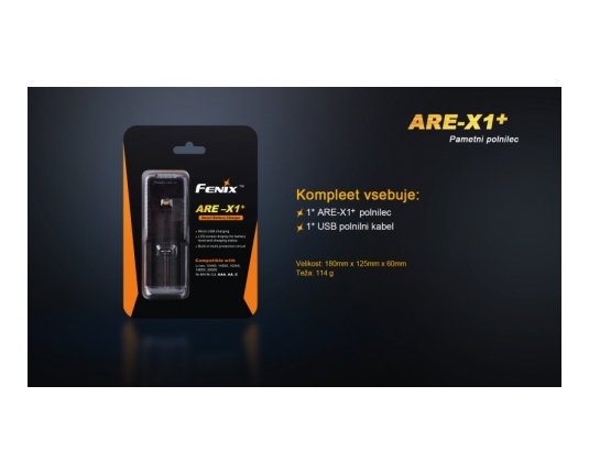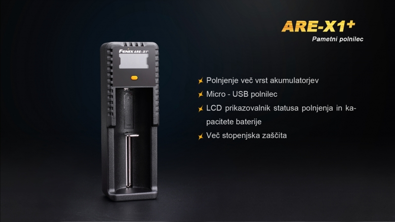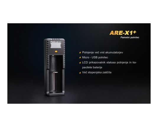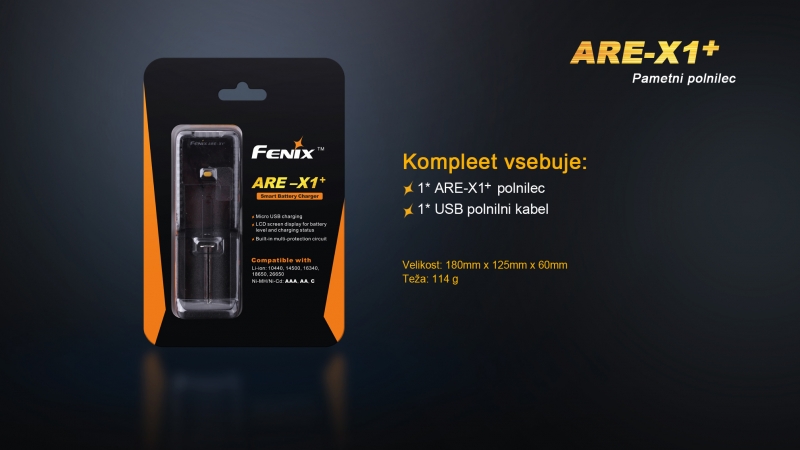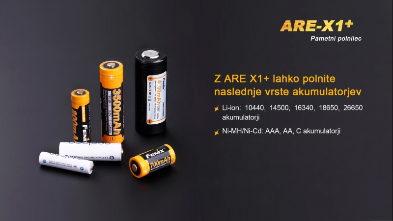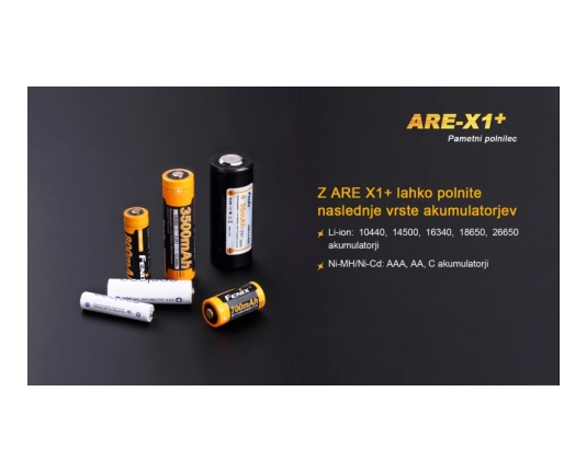 Pametni polnilec Fenix ARE-D1 je namenjen polnjenju AA, AAA, C, 18650 in 26650 ter 14500 in 10440 akumulatorjev preko Micro USB kabla.