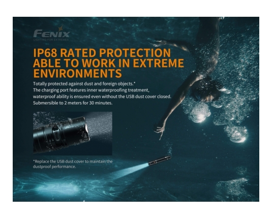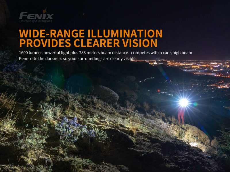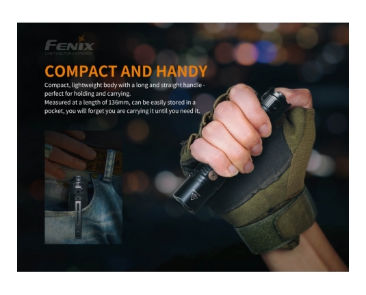 Akumulatorska ročna svetilka Fenix PD36R odlikuje kompaktna izvedba in vrhunska svetilnost neverjetnih 1600 lumnov. Svetilko polnite s priloženim USB - C polnilcem.