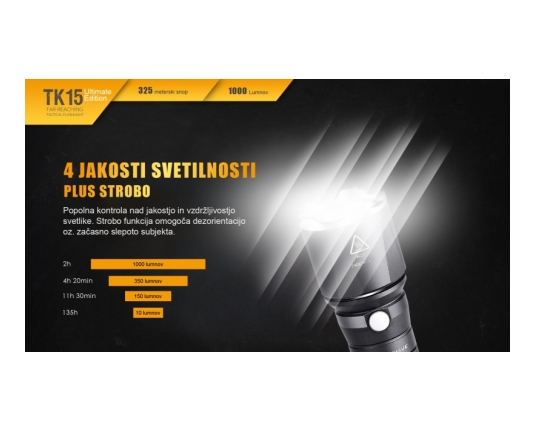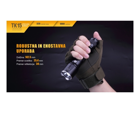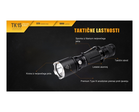 Svetilka Fenix TK15UE je v prvi vrsti namenjena profesionalnem uporabnikom, predvsem vojakom, policajem in varnostnikom.