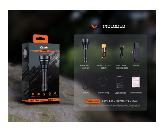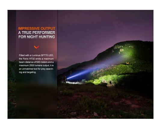 Svetilka Fenix HT32 je multifunkcijska svetilka zasnovana za uporabo pri lovu z impresivnim 640 metrskim snopom.