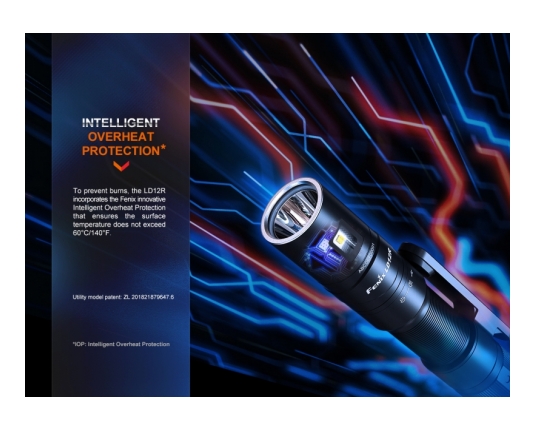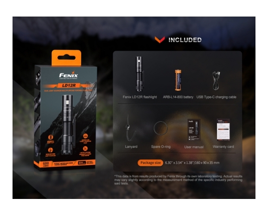 Svetilka Fenix LD12R z dvojnim virom svetlobe; 600 lumni svetilnosti in 186 metrskim snopom.